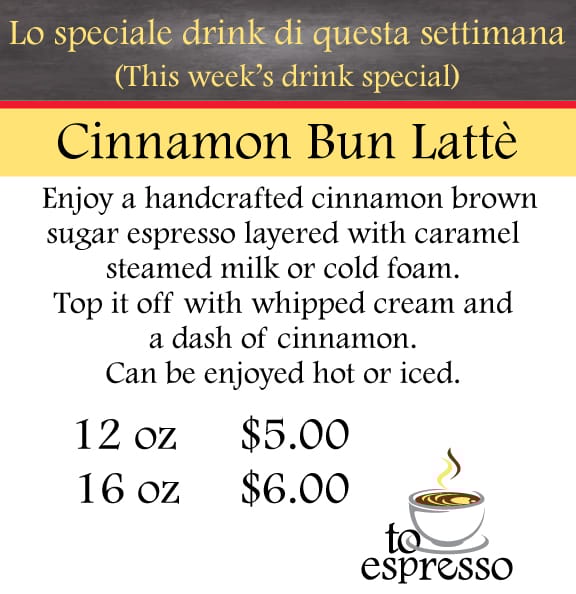 Handcrafted espresso, tea and hot chocolate prepared when your order is placed at Torina’s serving window. Find your favorite below. Don’t see what you are looking for? Ask your mobile barista.