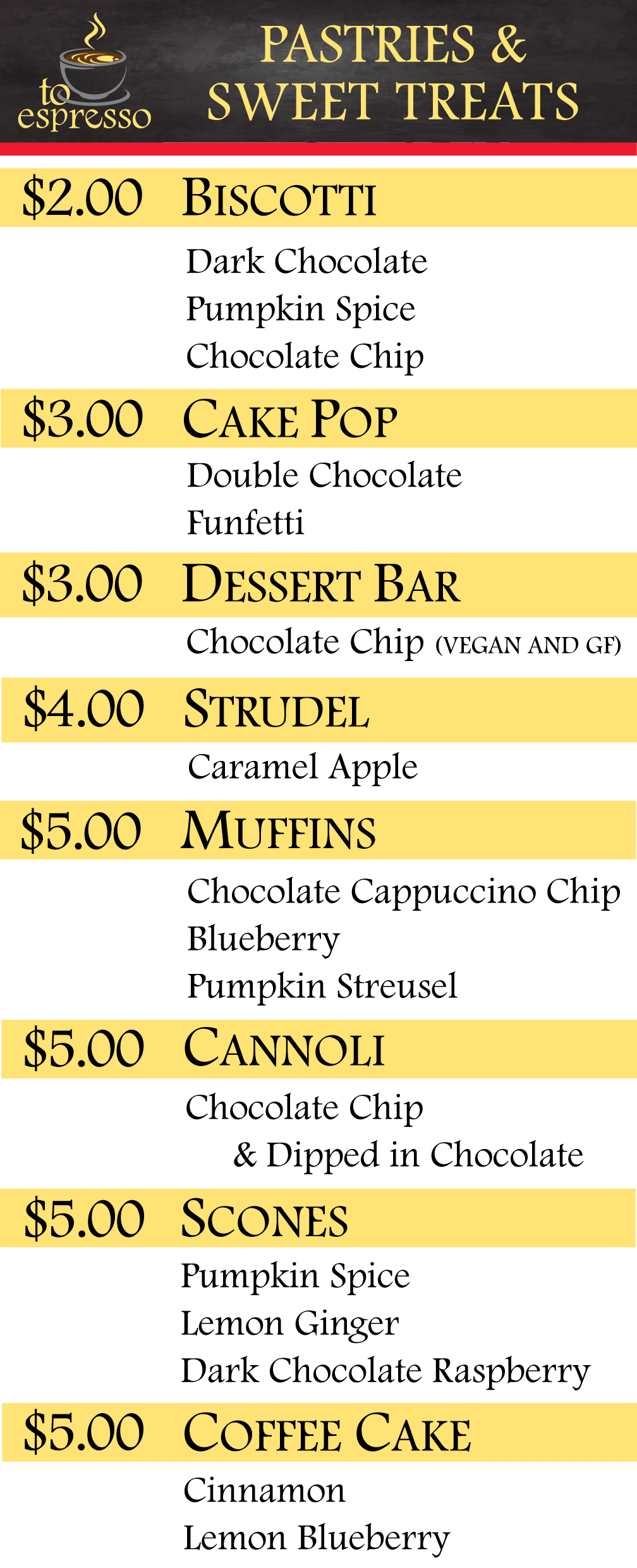 Come enjoy a delicious Italian pastry or other delectable treat provided by area pastry artists: